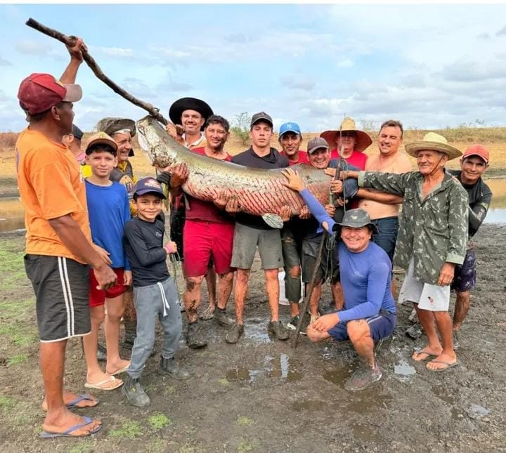 A tranquilidade da pequena Água Nova, município do Alto Oeste do Rio Grande do Norte, foi quebrada por um episódio digno de grandes histórias de pescaria. Na manhã deste sábado (17 de janeiro), pescadores locais protagonizaram uma cena rara e impressionante ao capturarem três exemplares gigantes de pirarucu, peixe típico da Amazônia e conhecido por sua força e tamanho extraordinários.
