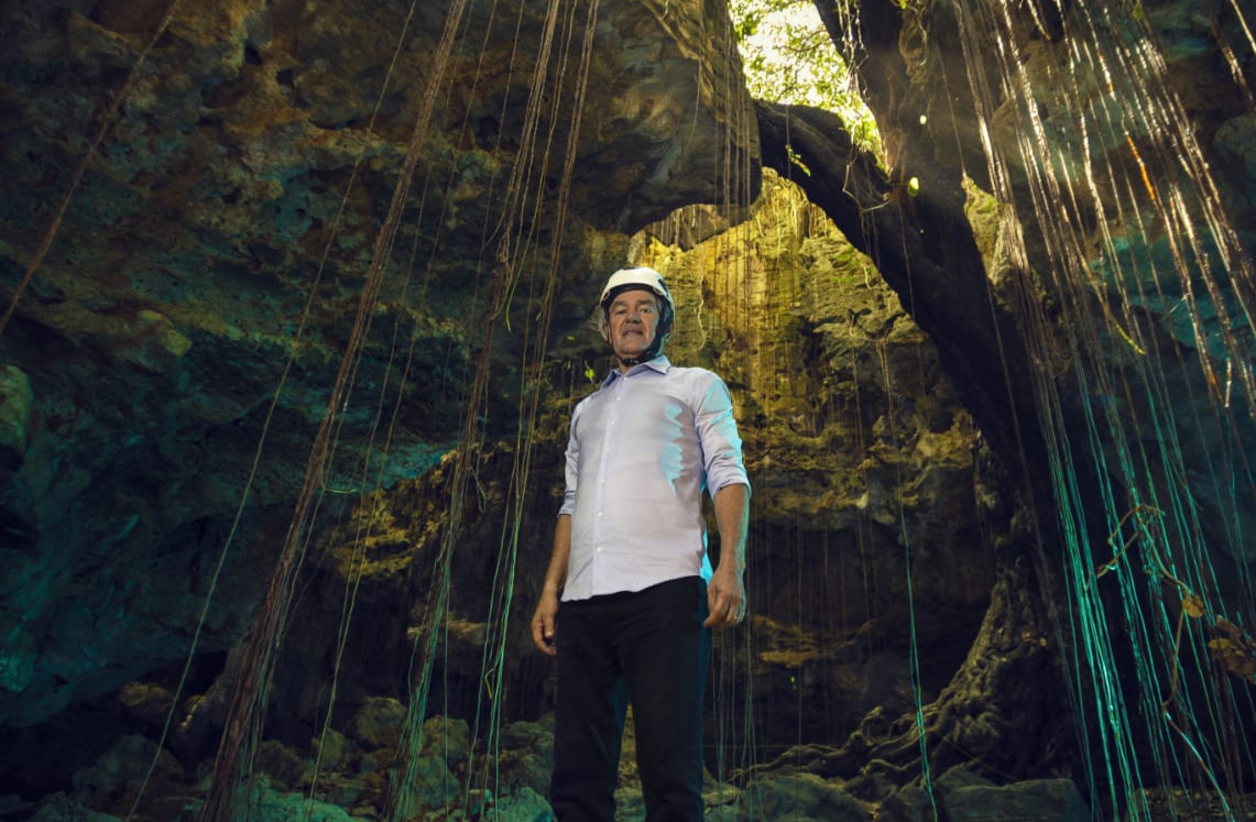 *Foto:Legenda:Empresário Toinho da Ster Bom na Caverna dos Crotes no município de Felipe Guerra*.Foto.Humberto Lopes.Divulgação/Projeto Lajedo do Rosário