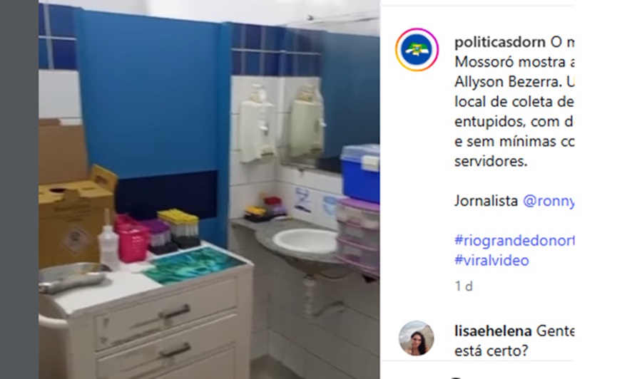 De acordo com o Blog Políticas do RN, a coleta de sangue para realização de exames está sendo feita na Unidade de Pronto Atendimento (UPA) do Alto de São Manoel, em um lugar nada adequado: em um banheiro.