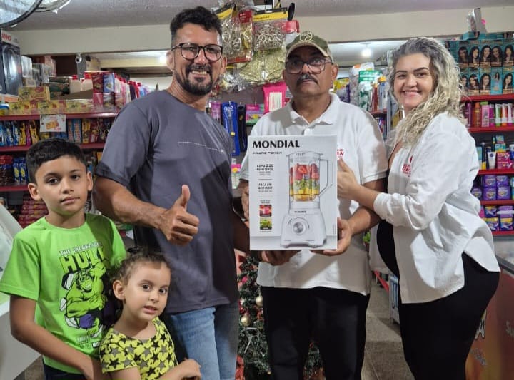 Encerrando o ano de 2025 com muita alegria, o sorteio distribuiu diversos prêmios aos clientes. Foram sorteados bicicleta, cesta básica, geladeira, sanduicheira, ventilador, liquidificador, ferro de passar e vale-gás.